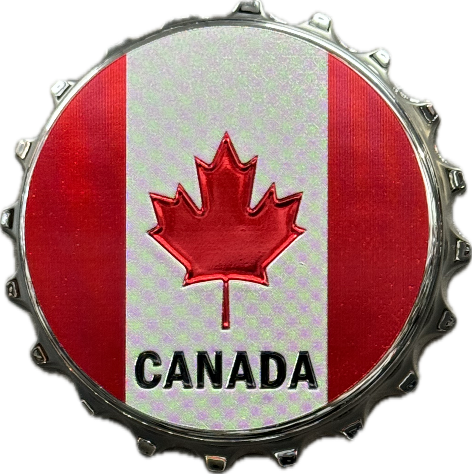 Capture the essence of Canada in every twist with our whimsical Canada-themed bottle cap magnets. Shaped like iconic bottle caps, each magnet is a miniature masterpiece adorned with quintessential Canadian symbols, from the maple leaf to the vibrant energy of Toronto.