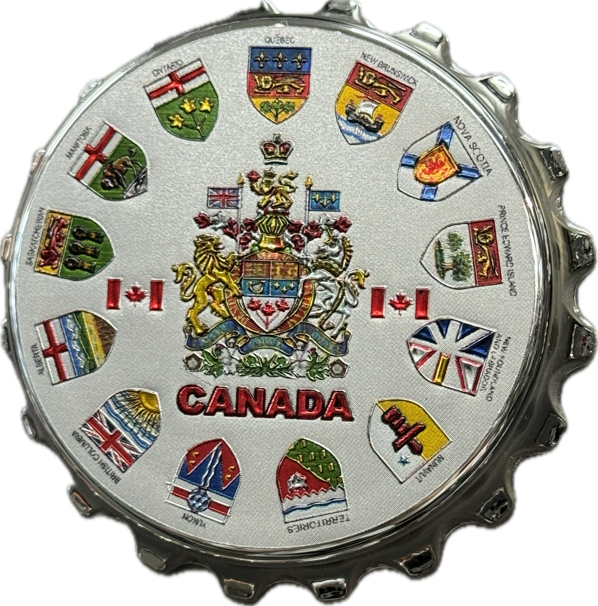 Crafted with meticulous detail, these magnets bring a touch of retro charm to your fridge or magnetic surfaces. The bottle cap design not only adds a playful aesthetic but also serves as a nod to Canada's rich brewing culture. Each cap showcases the unique character of the Great White North, making them a delightful addition to any Canadian or beer enthusiast's collection.